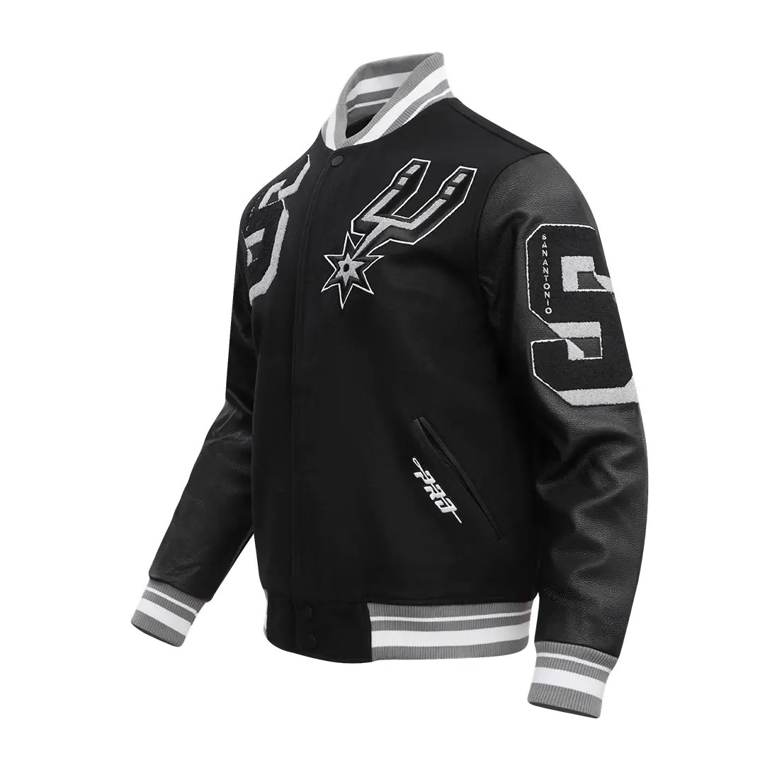 San Antonio Spurs Mashup Wool & Leather Black Varsity Jacket