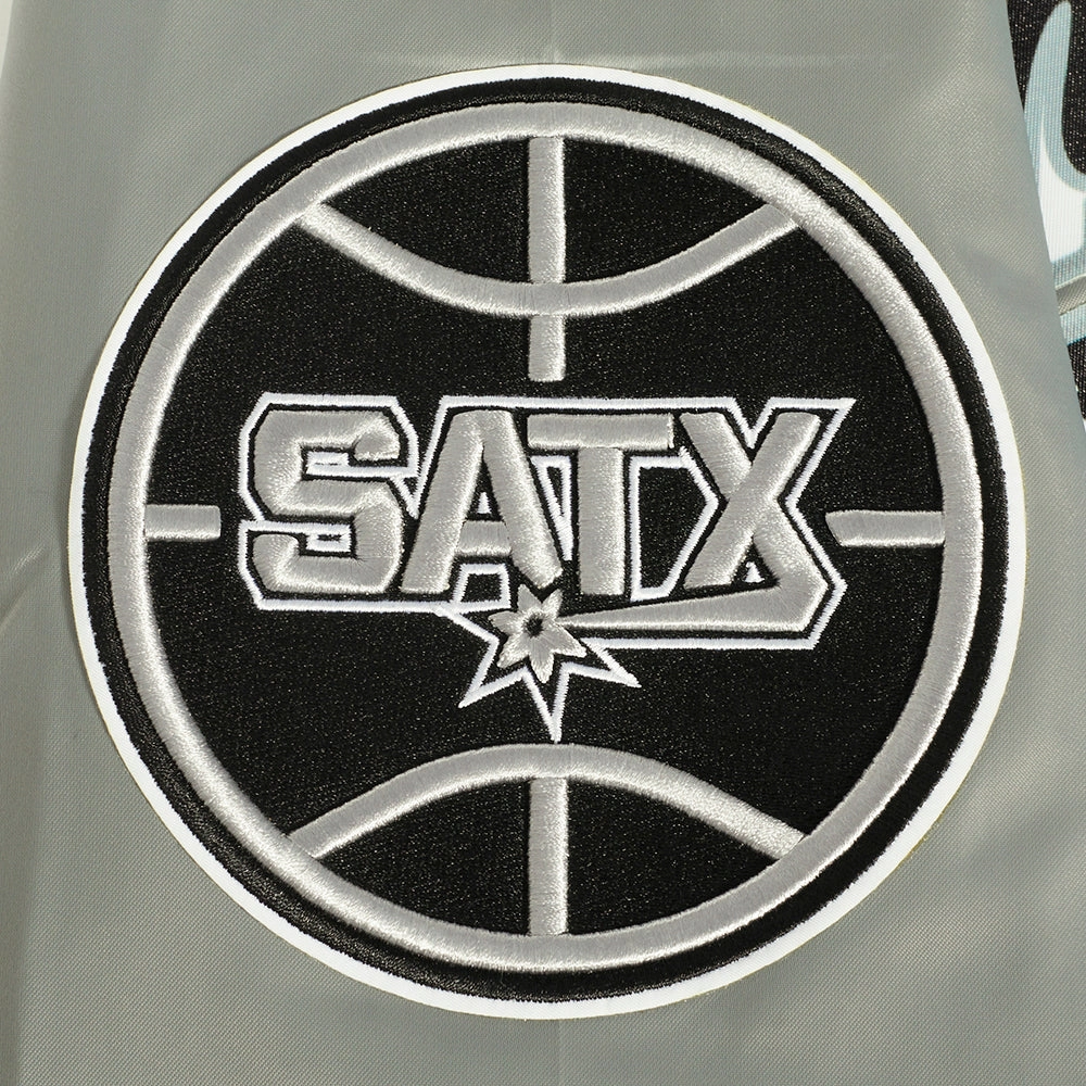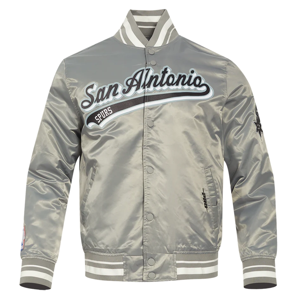San Antonio Spurs Script Tail Ribbed Knitted Gray Satin Varsity Jacket