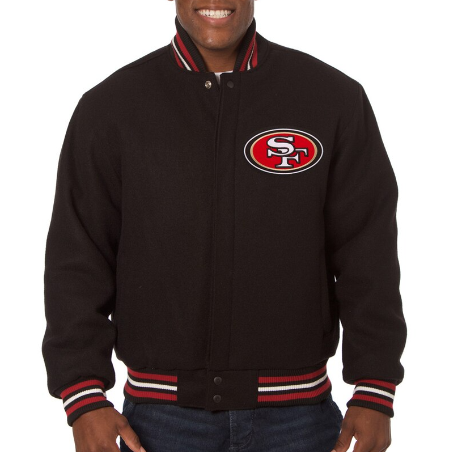 San Francisco 49ers One Color Black Wool Varsity Jacket