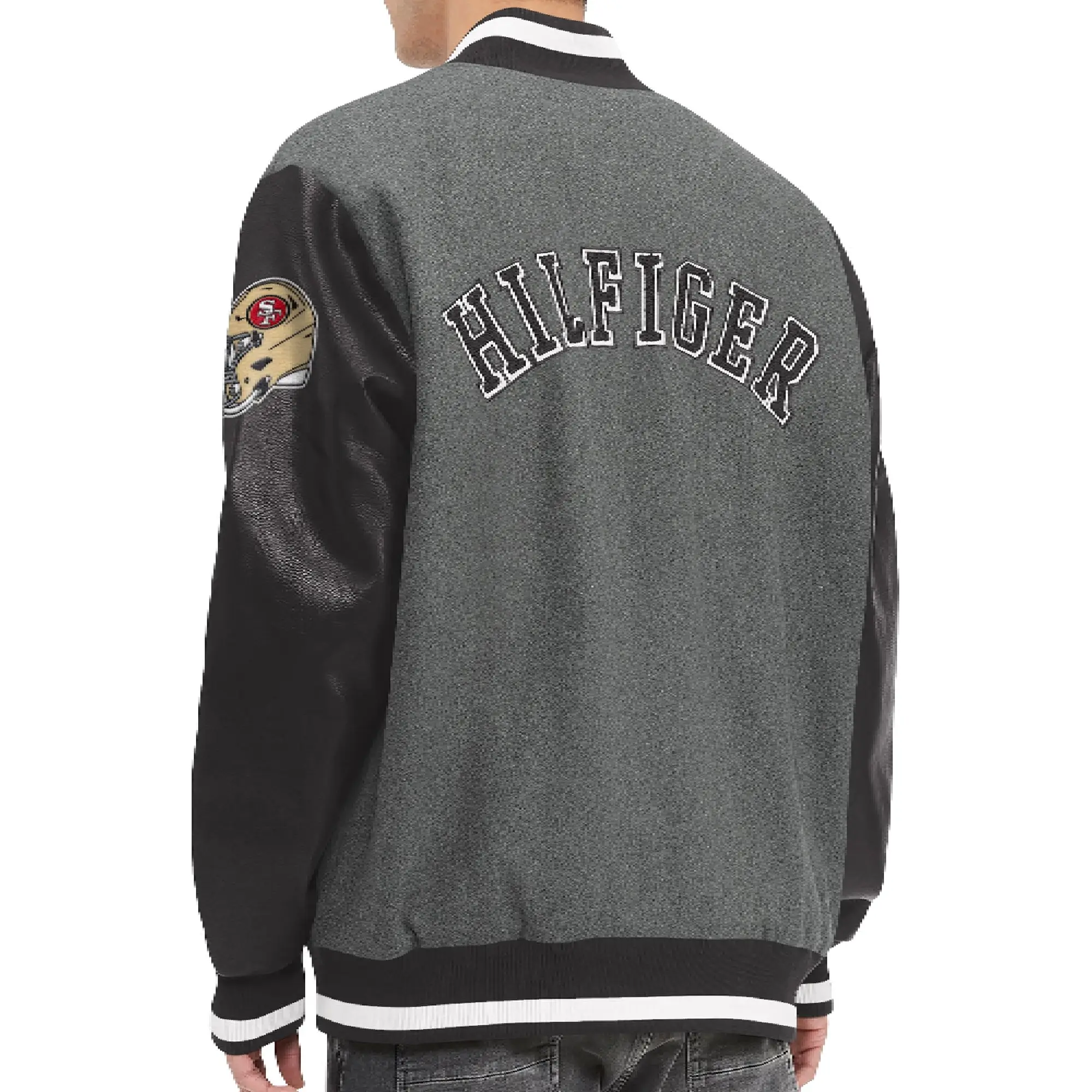 San Francisco 49ers Tommy Hilfiger Grey and Black Varsity Jacket