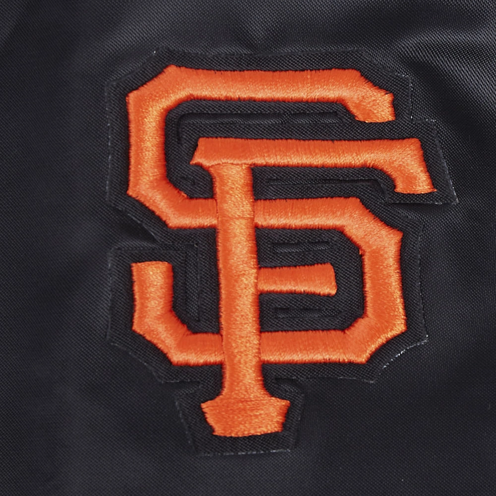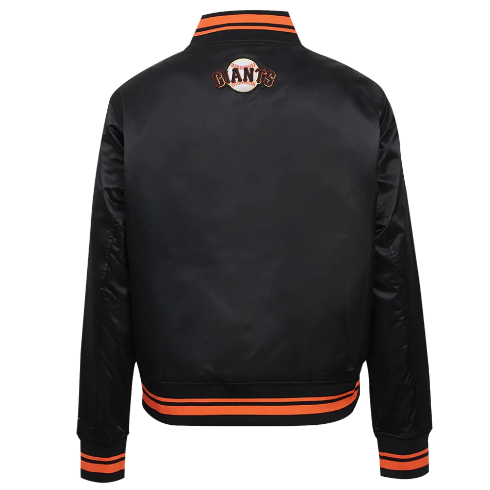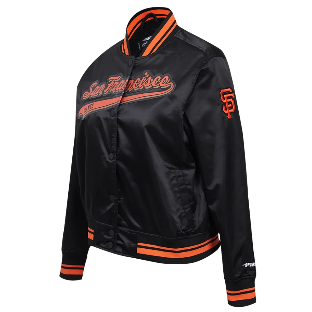 San Francisco Giants Script Tail Women’s Full-Snap Satin Varsity Black Jacket