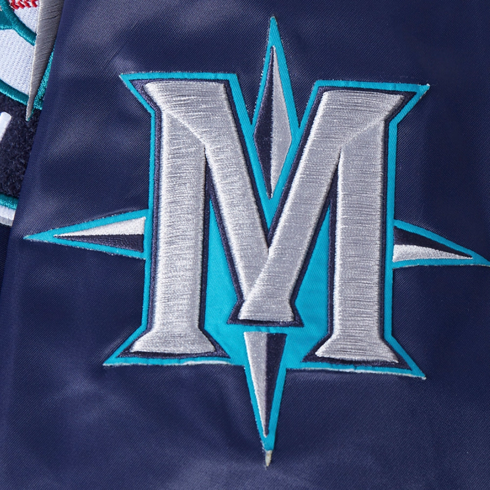 Seattle Mariners Mashup Full-Snap Satin Varsity Navy Jacket