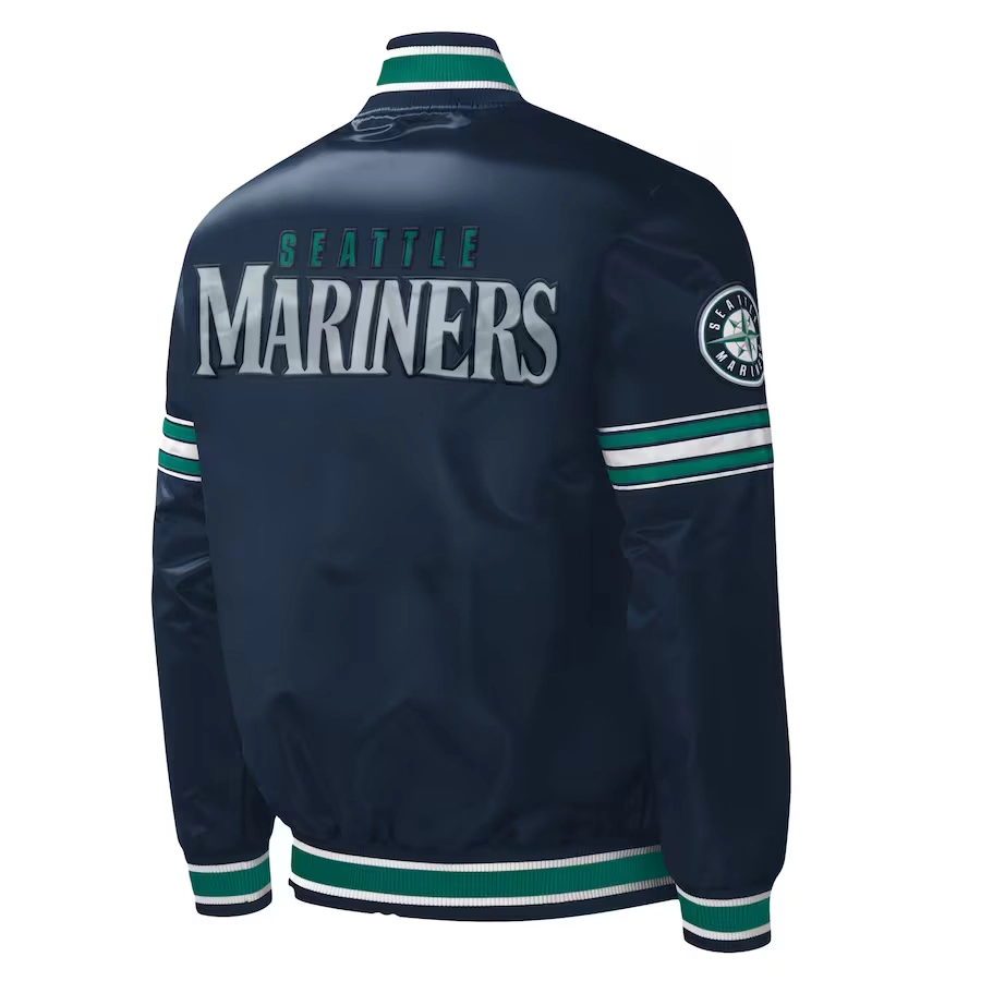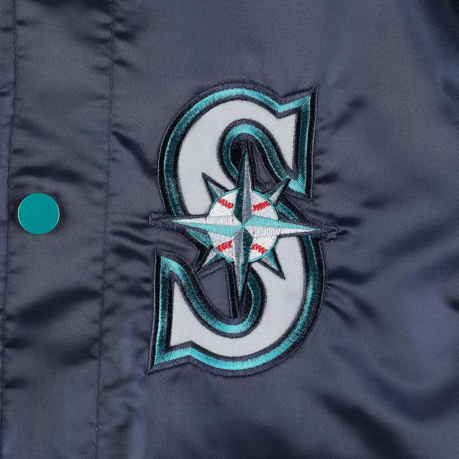 Seattle Mariners Midfield Full-Snap Navy Satin Varsity Jacket