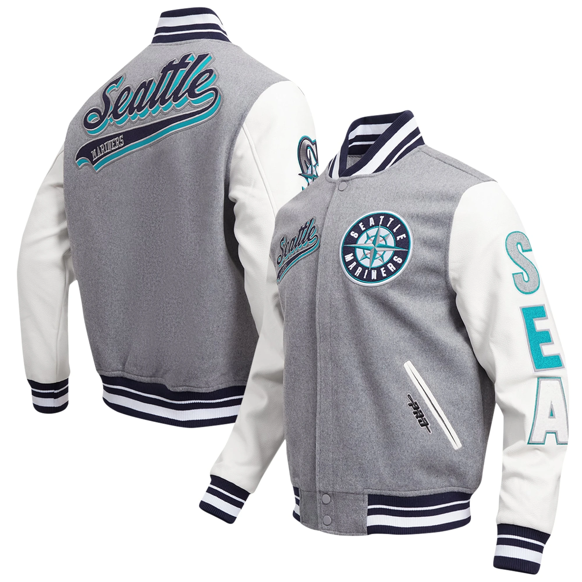 Seattle Mariners Script Tail Wool & Leather Varsity Jacket
