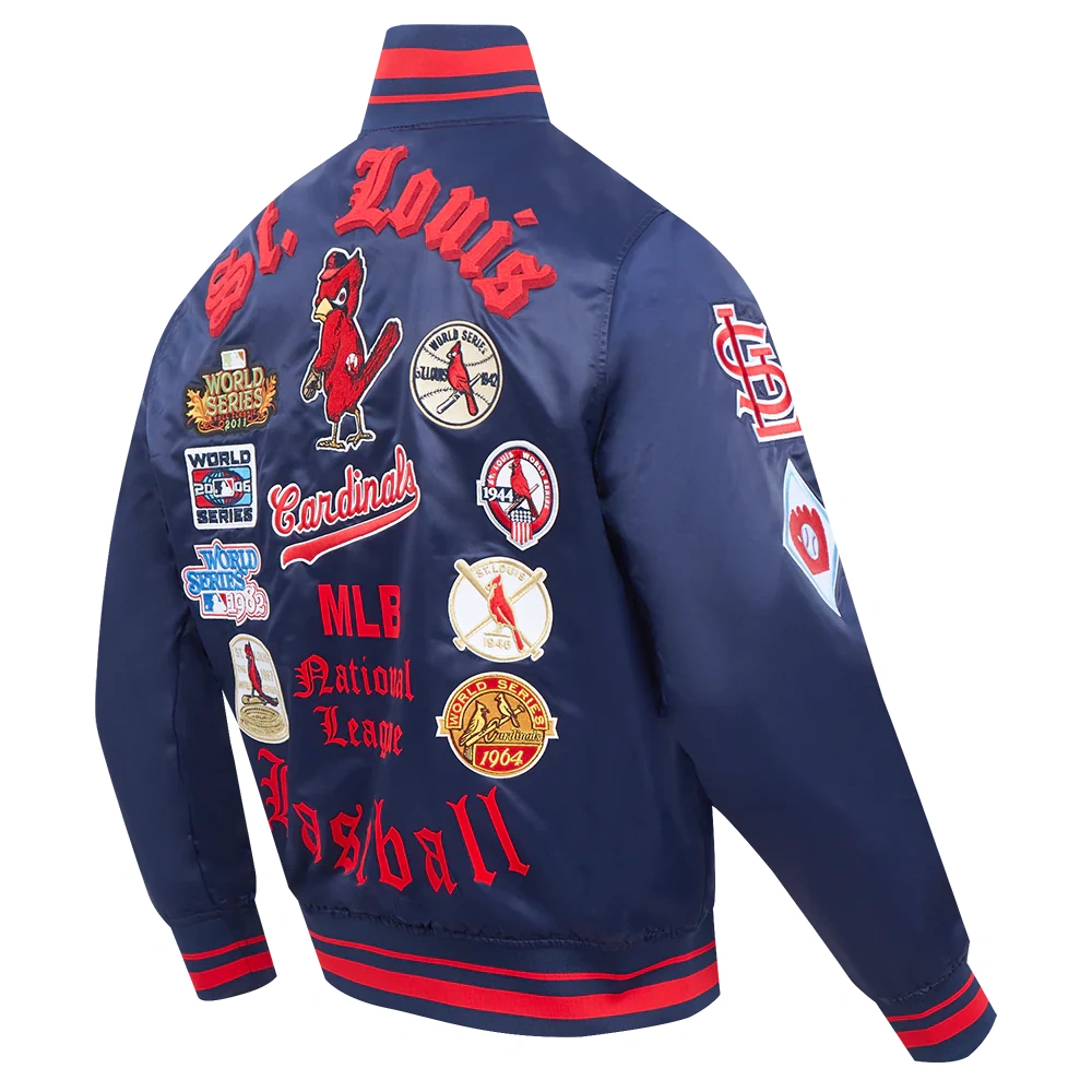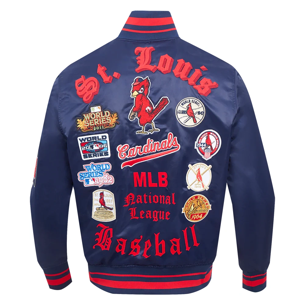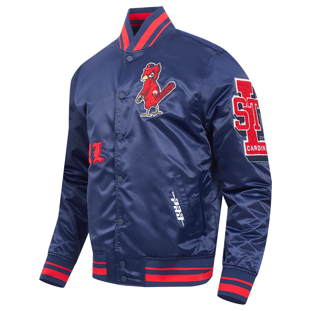 St. Louis Cardinals Old English Navy Satin Varsity Jacket