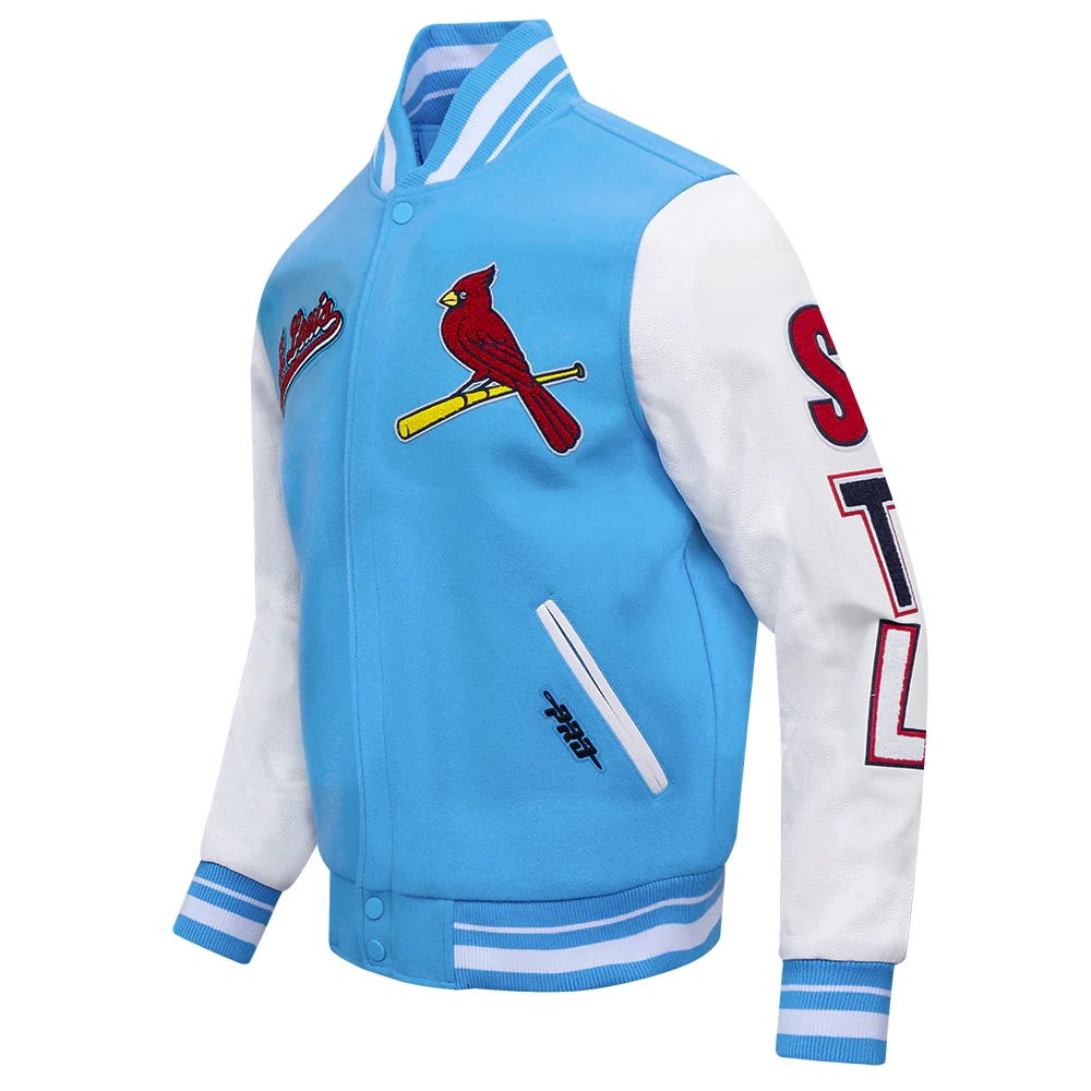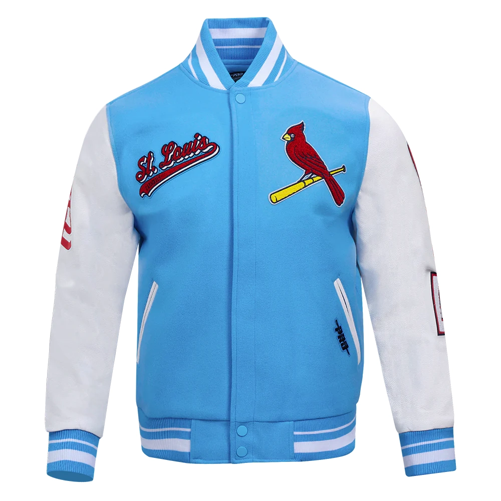 St. Louis Cardinals Script Tail Wool & Leather Varsity Jacket – Blue/White
