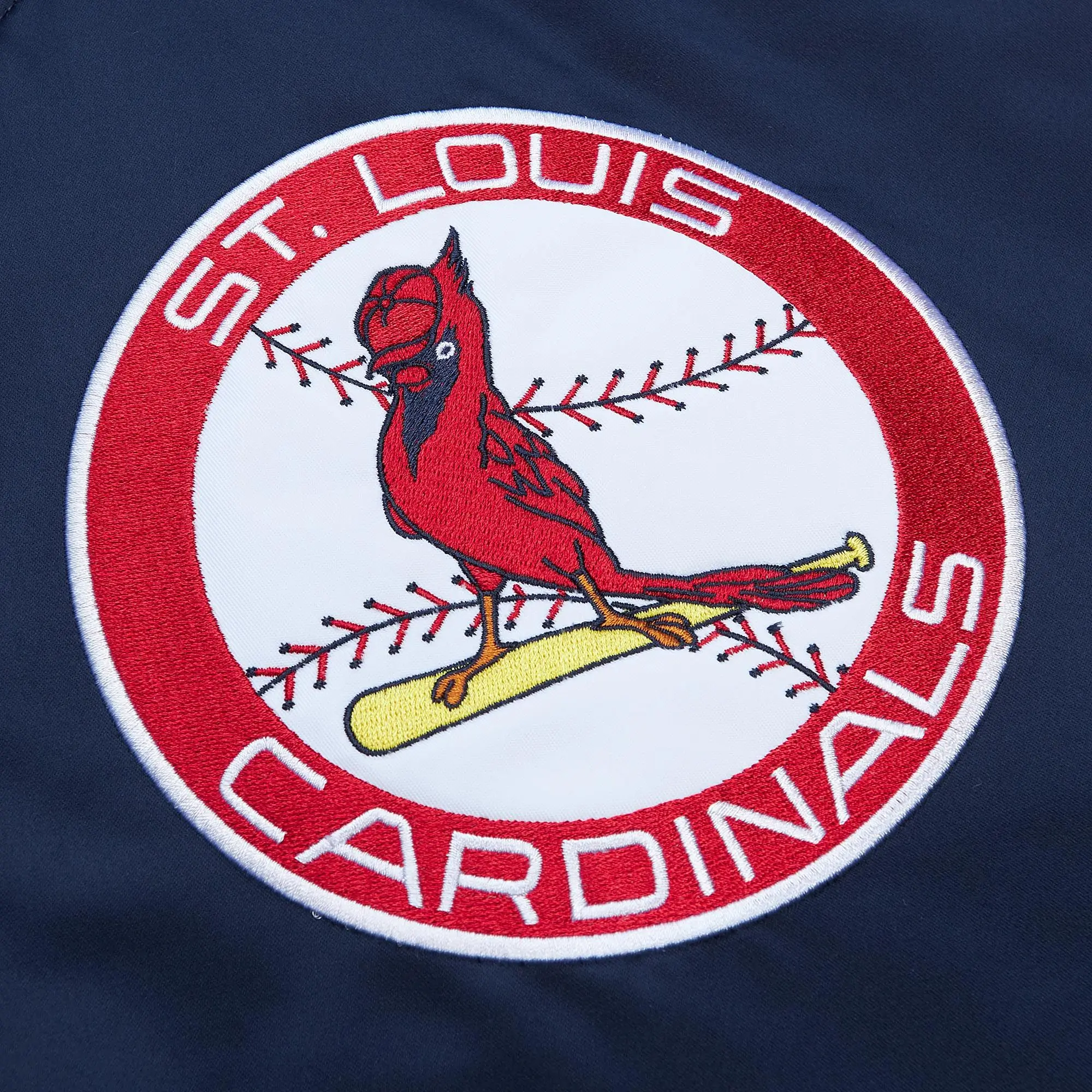 St. Louis Cardinals Team Cooperstown Heavyweight Full-Snap Satin Varsity Jacket – Navy