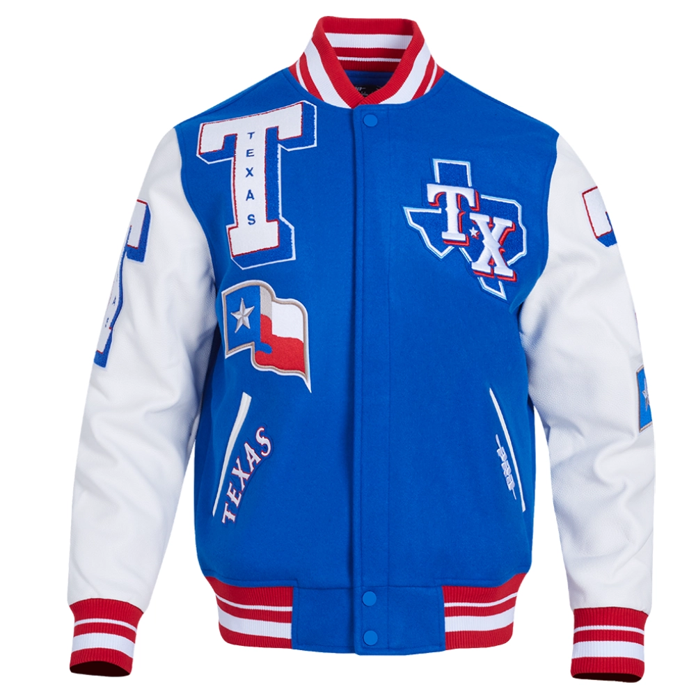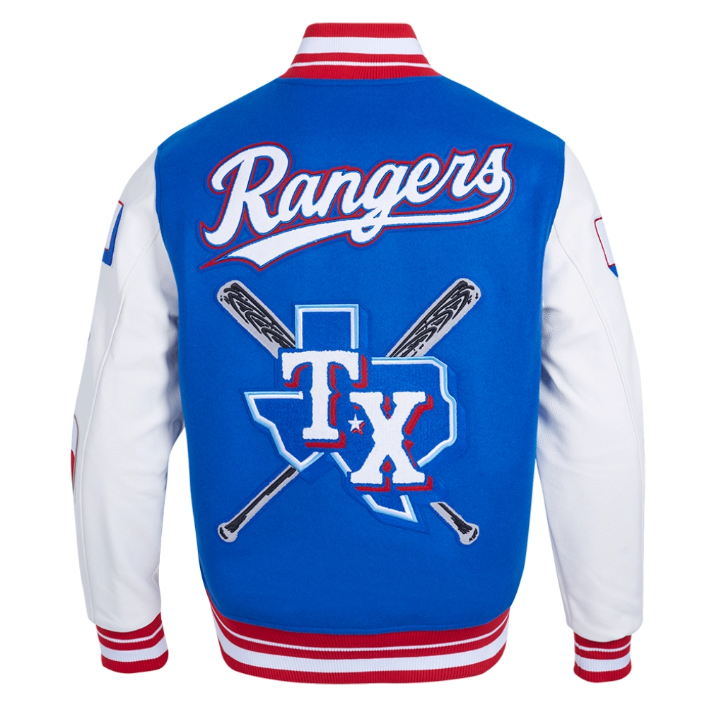 Texas Rangers Mashup Blue/White Wool & Leather Varsity Jacket