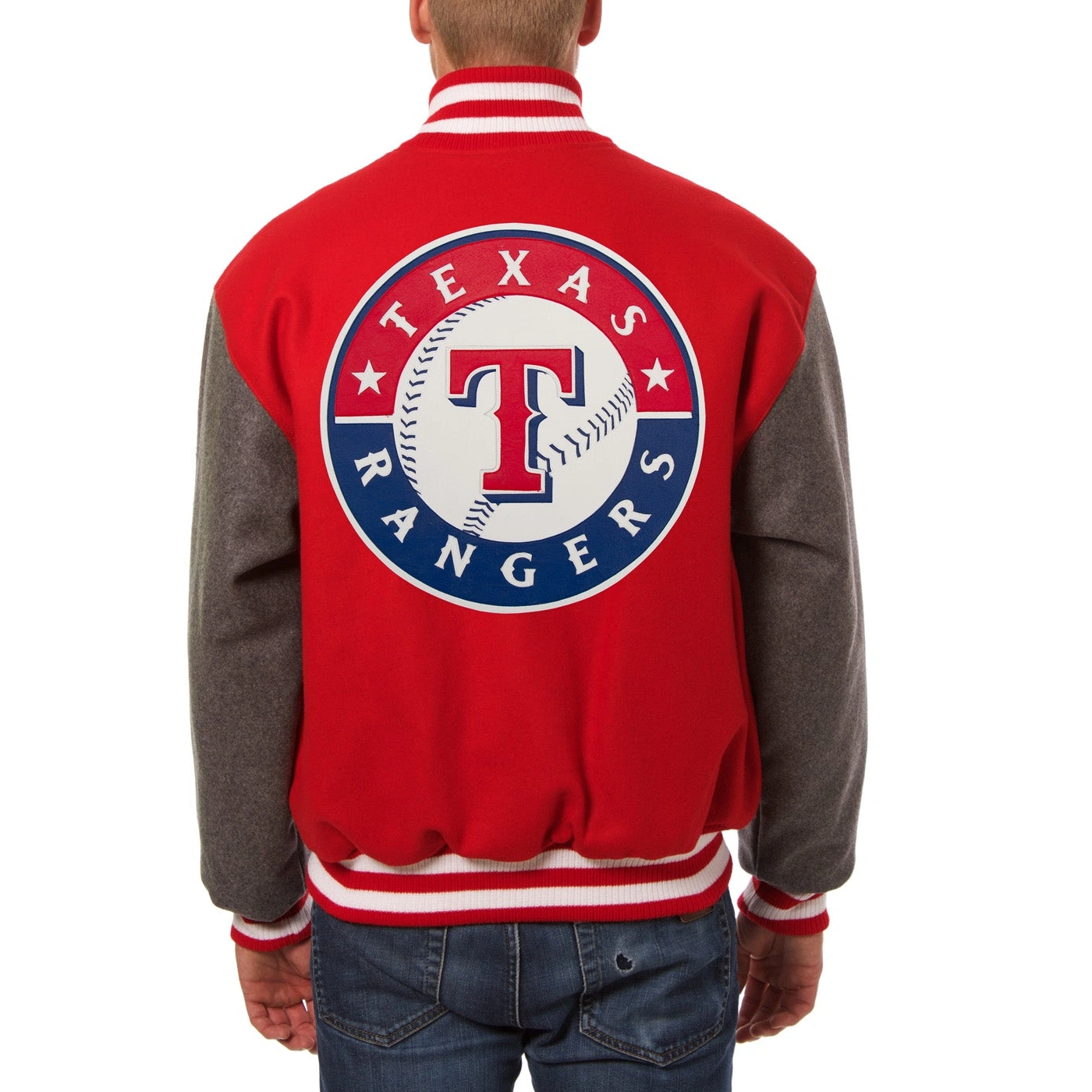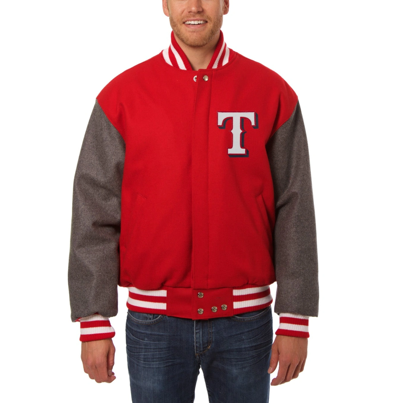 Texas Rangers Two Tone Red/Gray Wool Varsity Jacket