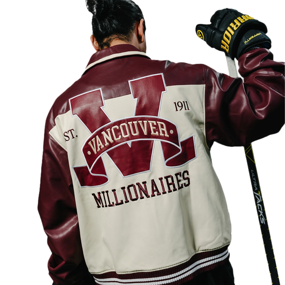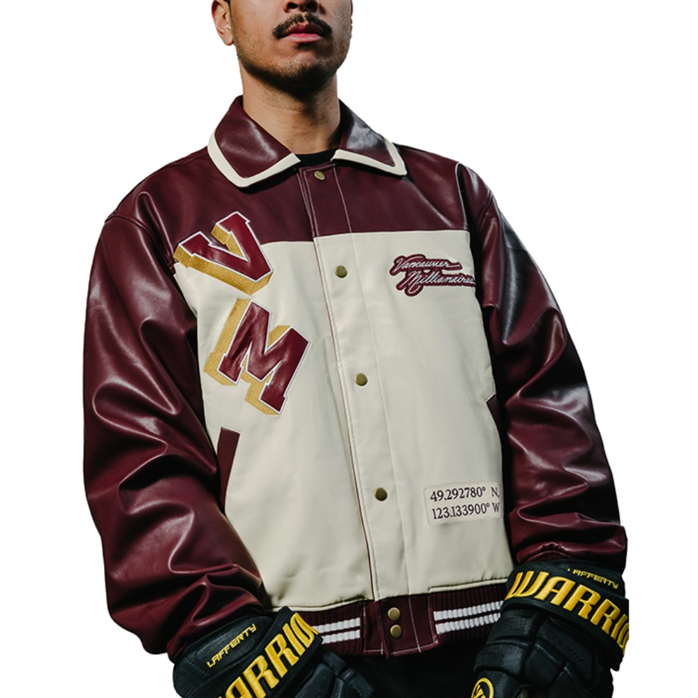 Vancouver Canucks Shirt Collar Leather Varsity Jacket