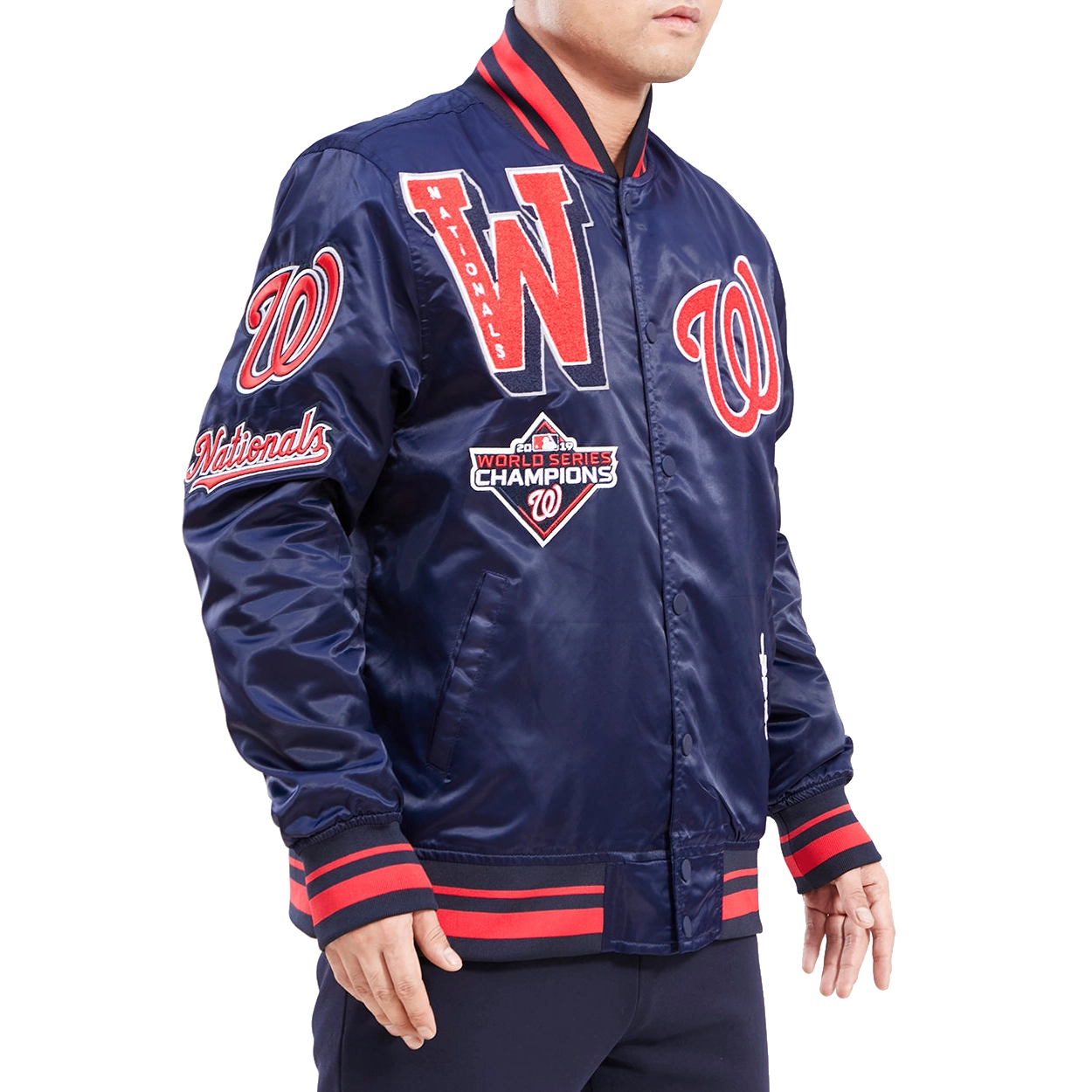 Washington Nationals Mashup Logo Navy Satin Varsity Jacket