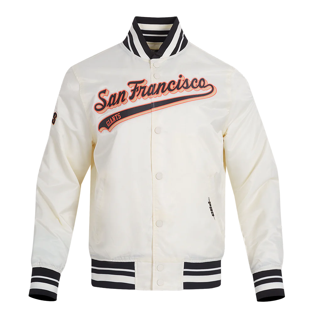 White San Francisco Giants Script Tail Satin Varsity Jacket