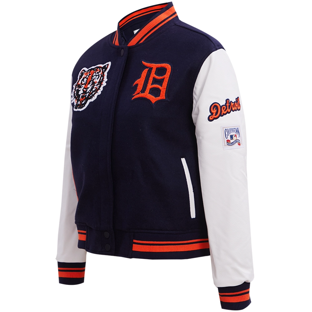 Women’s Detroit Tigers Retro Classic Wool & Leather Varsity Jacket Navy & White